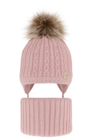 Komplet zimnej dívčej: čiapka a tunel růžový s bambuľou Passa