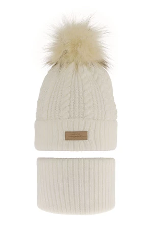 Komplet zimní dívčí: čepice a tunel krémový bambulí Alika