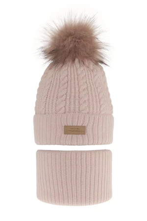 Komplet zimní dívčí: čepice a tunel růžový bambulí Alika