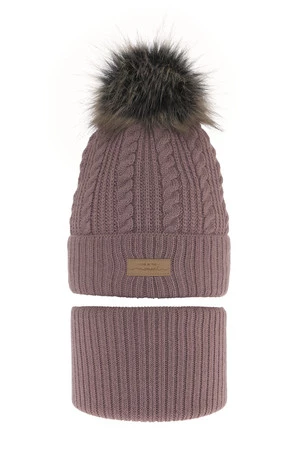 Komplet zimní dívčí: čepice a tunel růžový bambulí Alika