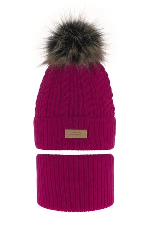 Komplet zimní dívčí: čepice a tunel růžový bambulí Alika