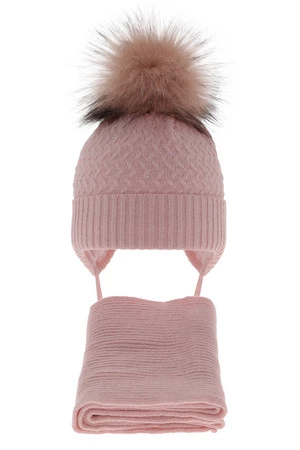 Komplet zimnej dívčej: čiapka a šál růžový s bambuľou Zelta