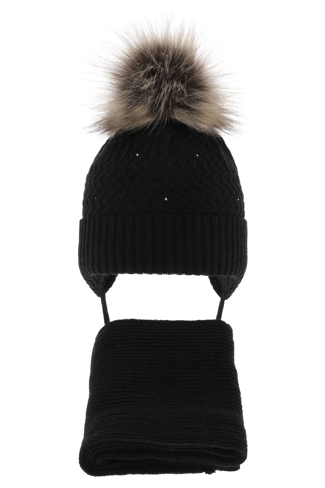 Komplet zimnej dívčej: čiapka a šál černý s bambuľou Zelta
