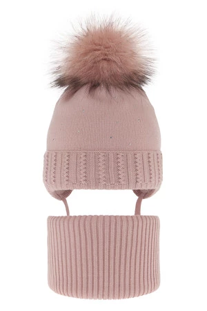 Komplet zimnej dívčej: čiapka a tunel růžový s bambuľou Renia