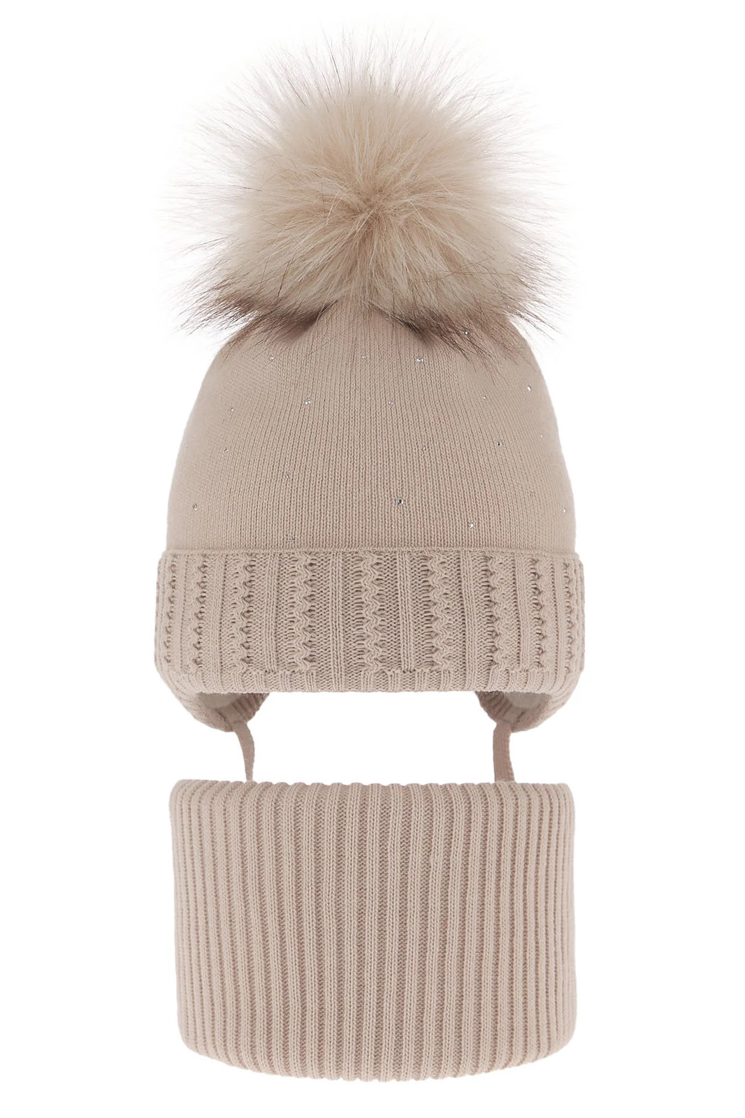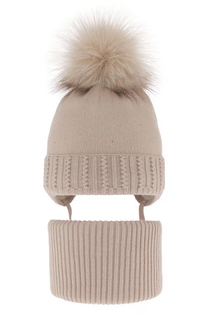 Komplet zimnej dívčej: čiapka a tunel béžový s bambuľou Renia