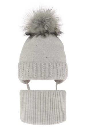 Komplet zimnej dívčej: čiapka a tunel šedý s bambuľou Renia