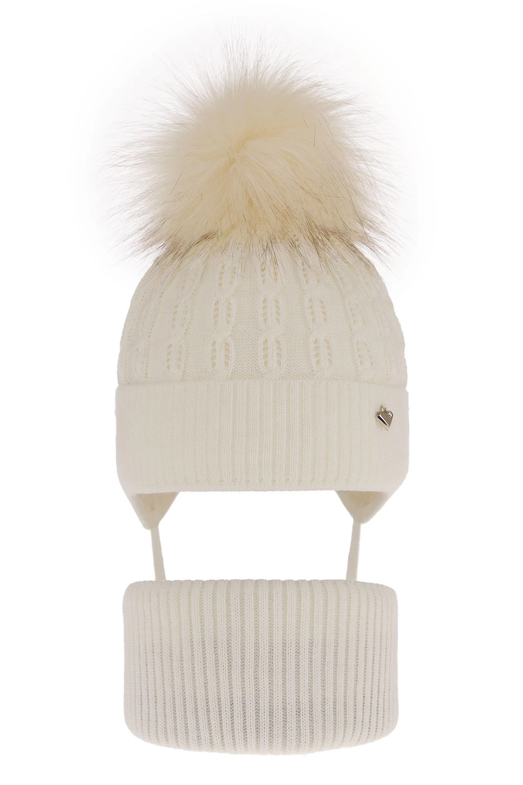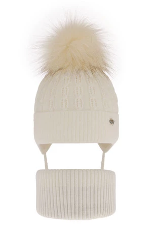 Komplet zimnej dívčej: čiapka a tunel krémový s bambuľou Tukana