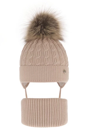 Komplet zimnej dívčej: čiapka a tunel béžový s bambuľou Tukana