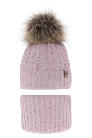 Komplet zimní dívčí: čepice a tunel fialový bambulí Pretoria