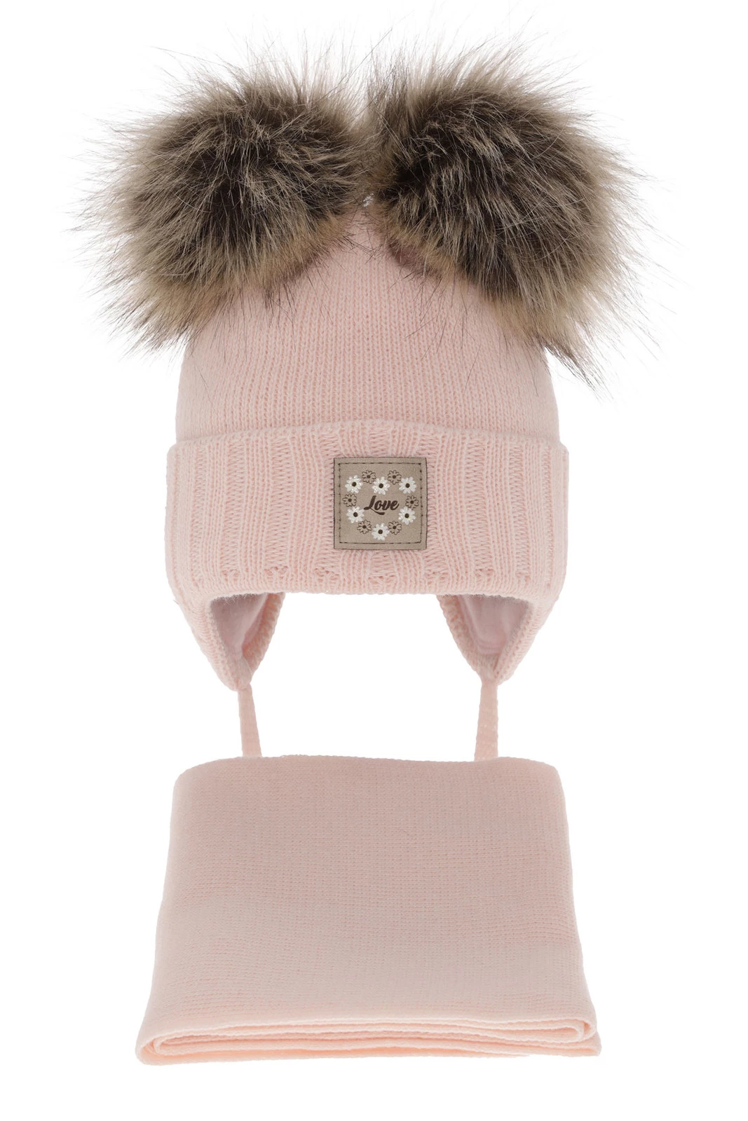 Komplet zimní dívčí: čepice a šála růžový se dvěma bambulemi Jazz