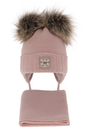 Komplet zimní dívčí: čepice a šála růžový se dvěma bambulemi Jazz