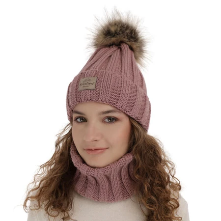 Komplet zimní dívčí: čepice a tunel růžový s bambulí Kaliope