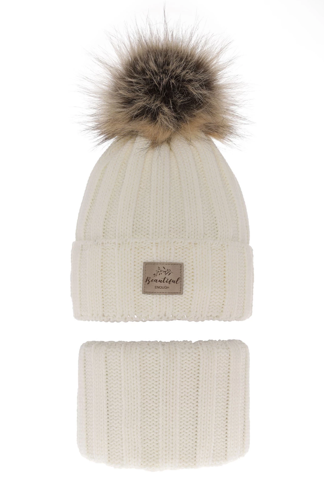 Komplet zimní dívčí: čepice a tunel krémový s bambulí Kaliope