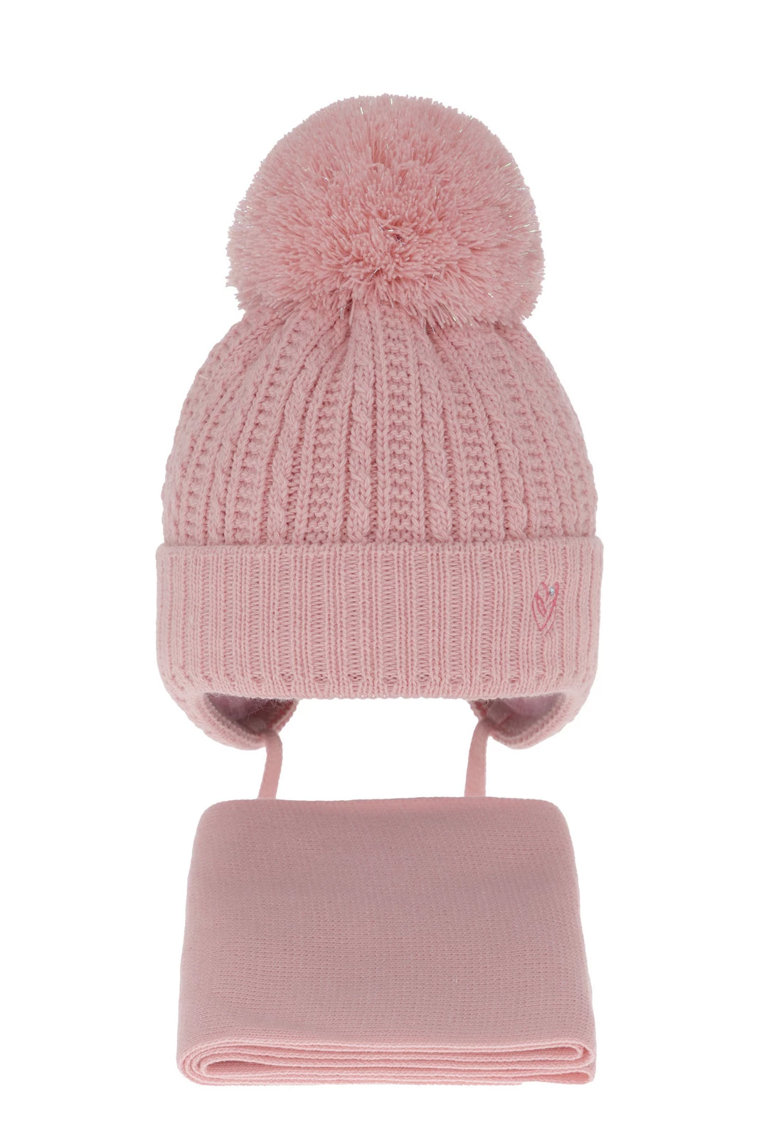 Set de iarnă pentru fete: căciulă și fular růžový cu pompon Marisa