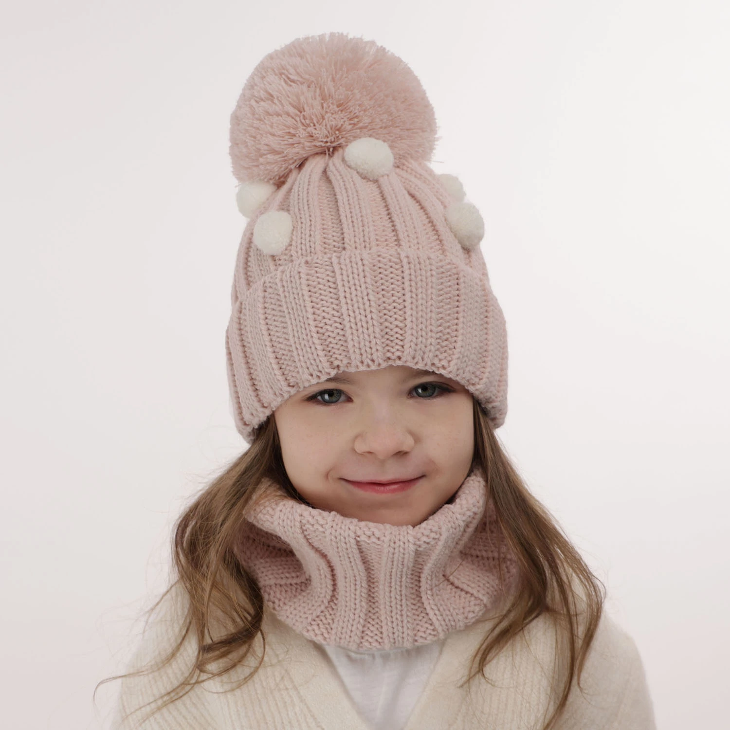 Komplet zimní dívčí: čepice a tunel růžový bambulí Hekate