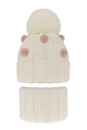 Komplet zimní dívčí: čepice a tunel krémový bambulí Hekate