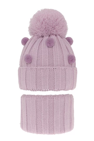 Komplet zimní dívčí: čepice a tunel fialový bambulí Hekate