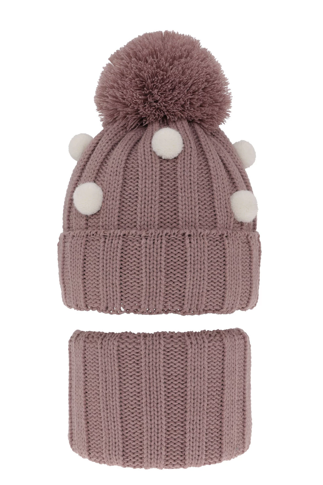 Komplet zimní dívčí: čepice a tunel růžový bambulí Hekate