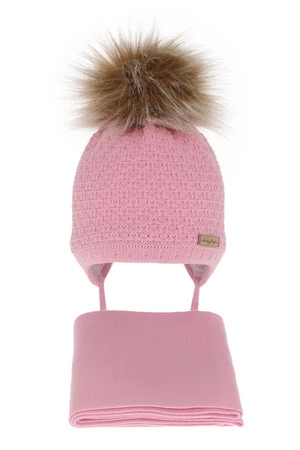 Komplet zimní dívčí: čepice a šála růžový s bambulí Clotilde