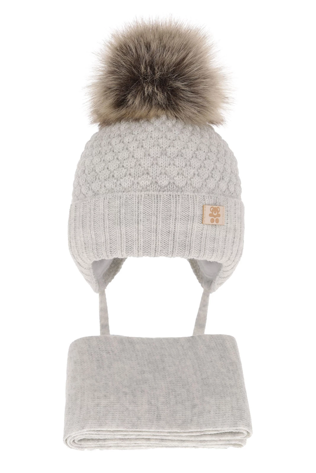 Komplet zimní chlapecký: čepice a šála šedý s bambulí Norberto