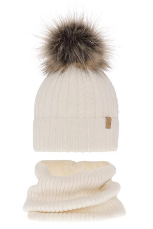 Komplet zimnej dívčej: čiapka a tunel krémový merino vlna Mirabel