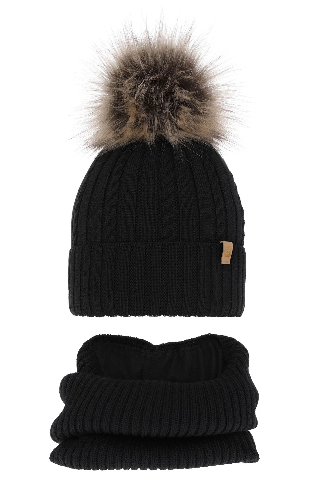 Komplet zimnej dívčej: čiapka a tunel černý merino vlna Mirabel