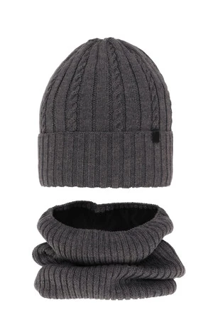 Komplet zimný chlapčenský: čiapka a šál šedý merino vlna Kairo