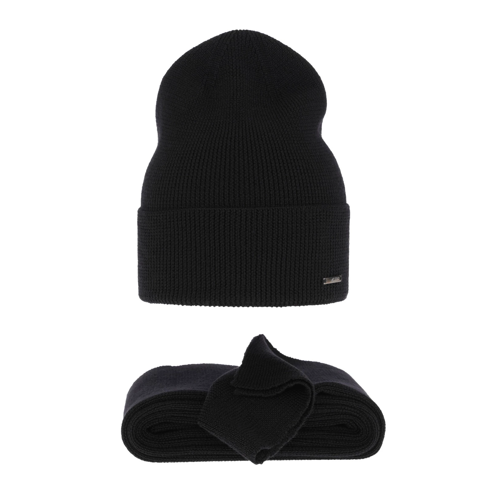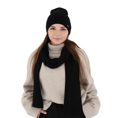 Dámský jarní/zimní set: čepice a šála černý 100% extra fine merino vlna Melpomena