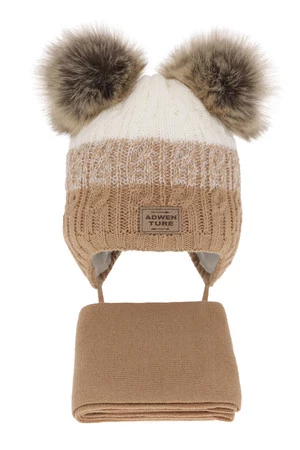 Komplet zimný chlapčenský: čiapka a šál camel s dvoma bambuľami Platon