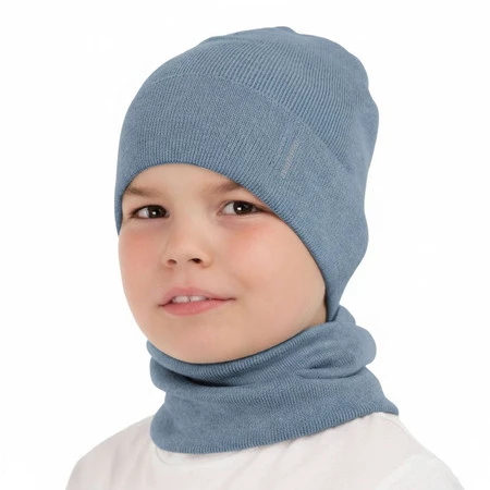 Komplet podzimní/jarní chlapecký: čepice a tunel, s bavlnou, modrý Timothe