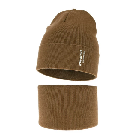Komplet podzimní/jarní chlapecký: čepice a tunel, s bavlnou, camel Timothe
