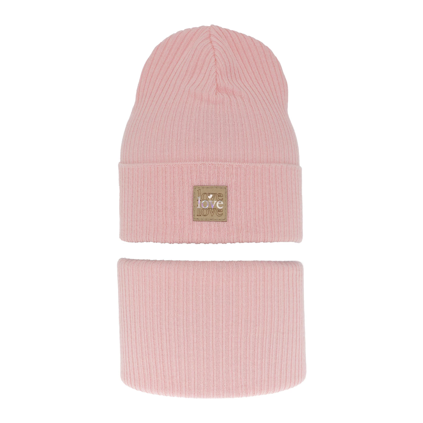 Komplet podzimní/jarní dívčí: čepice a tunel, s bavlnou, růžový Furora