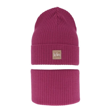 Komplet podzimní/jarní dívčí: čepice a tunel, s bavlnou, růžový Furora