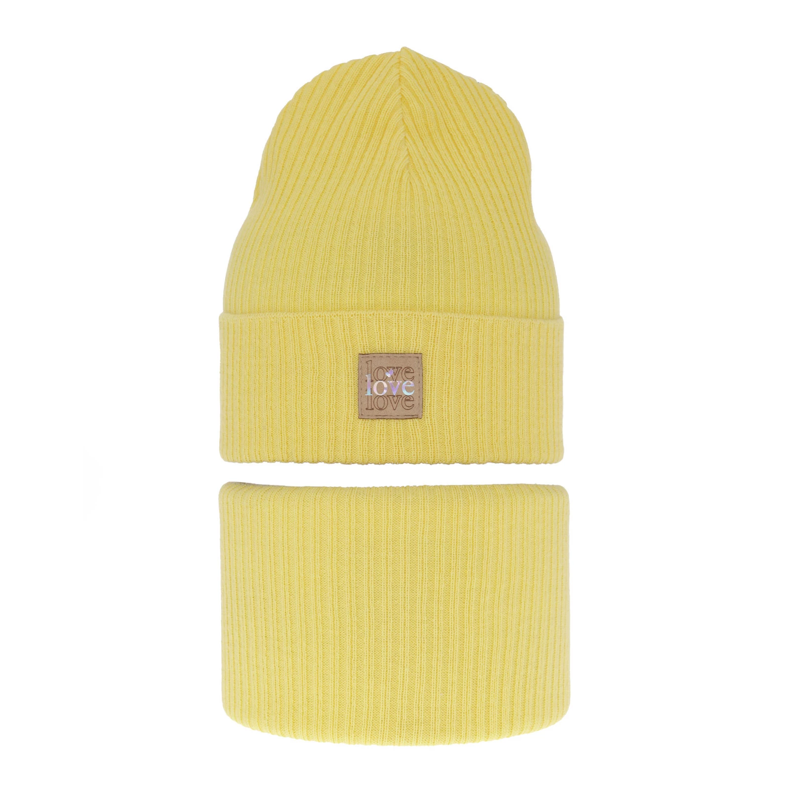 Komplet podzimní/jarní dívčí: čepice a tunel, s bavlnou, žlutý Furora
