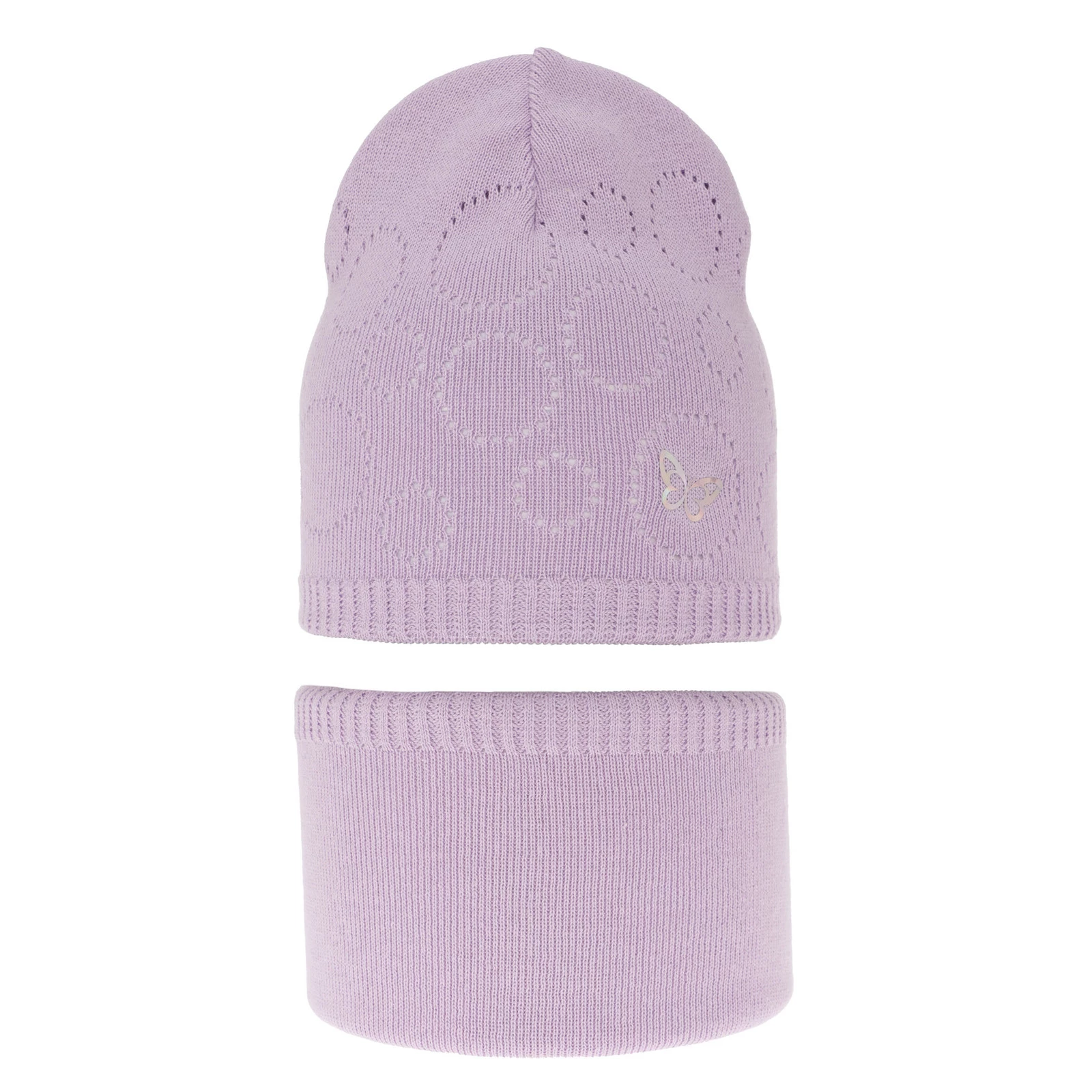 Komplet podzimní/jarní dívčí: čepice a tunel, s bavlnou, fialový Amarilla