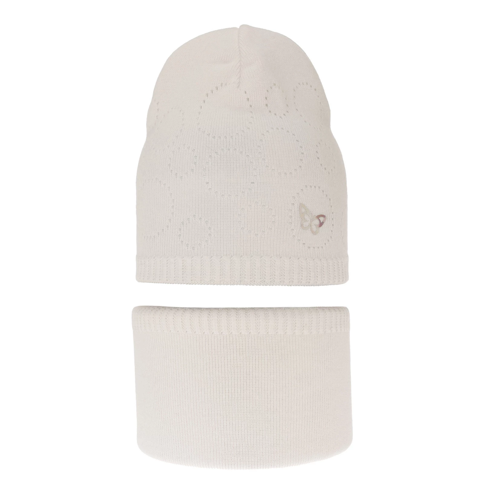 Komplet podzimní/jarní dívčí: čepice a tunel, s bavlnou, krémový Amarilla