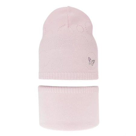 Komplet podzimní/jarní dívčí: čepice a tunel, s bavlnou, růžový Amarilla