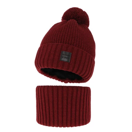 Komplet zimný chlapčenský: čiapka a tunel bordó Conan