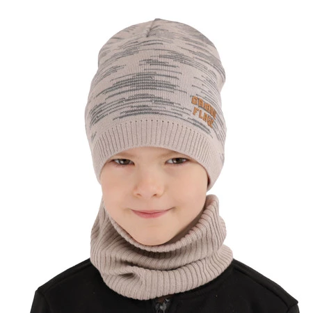 Komplet podzimní/jarní chlapecký: čepice a tunel, s bavlnou, béžový Carter