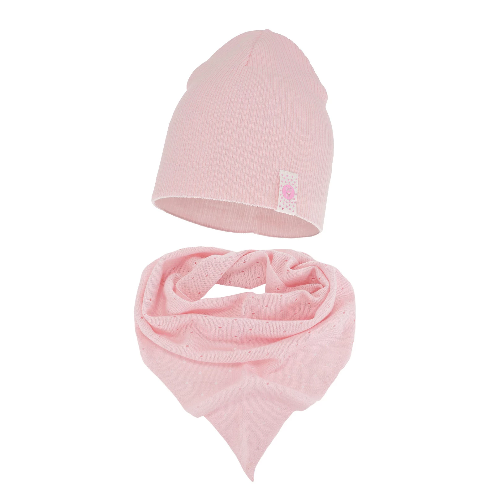 Komplet podzimní/jarní dívčí: čepice a šátek růžový Blanche