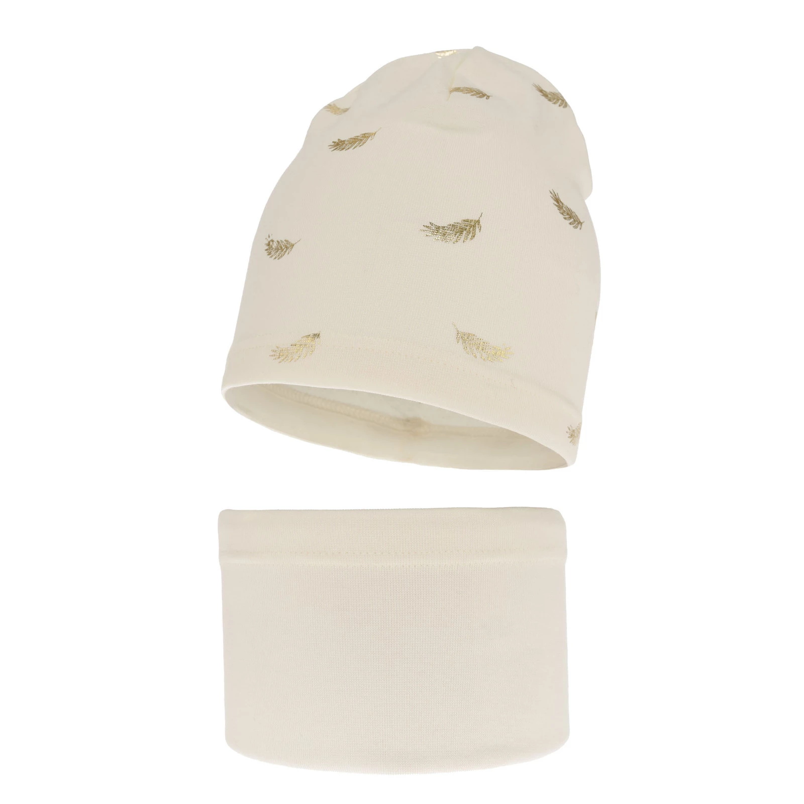 Komplet podzimní/jarní dívčí bavlněná: čepice a tunel krémový Florena