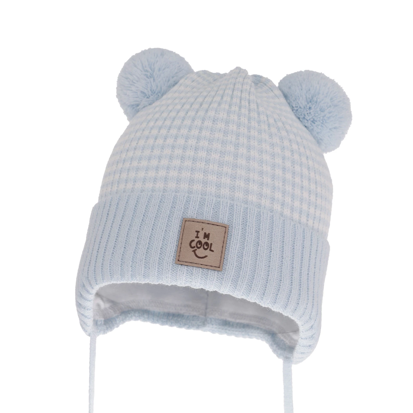 Chlapecká podzimno-jarní čepice světle modrá s dvoma bambulami Laurent