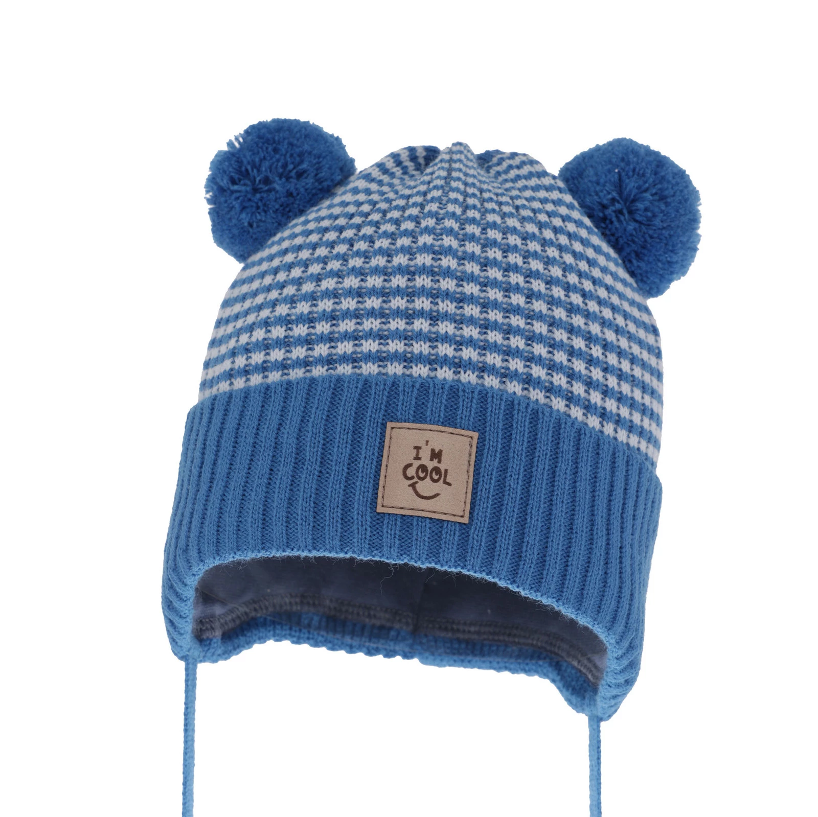 Chlapecká podzimno-jarní čepice modrá s dvoma bambulami Laurent