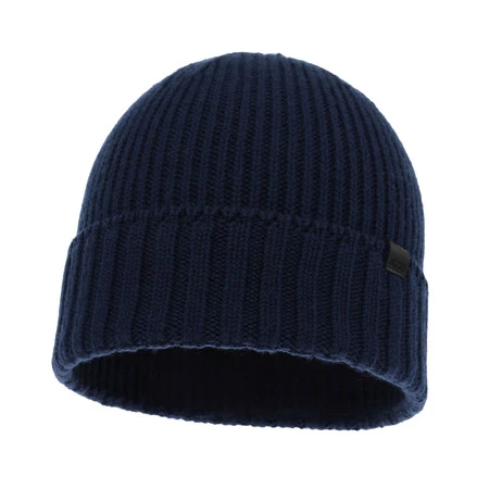 Pánská zimní čepice tmavě modrá 100% extrafine merino vlněná bezešvá Bruner
