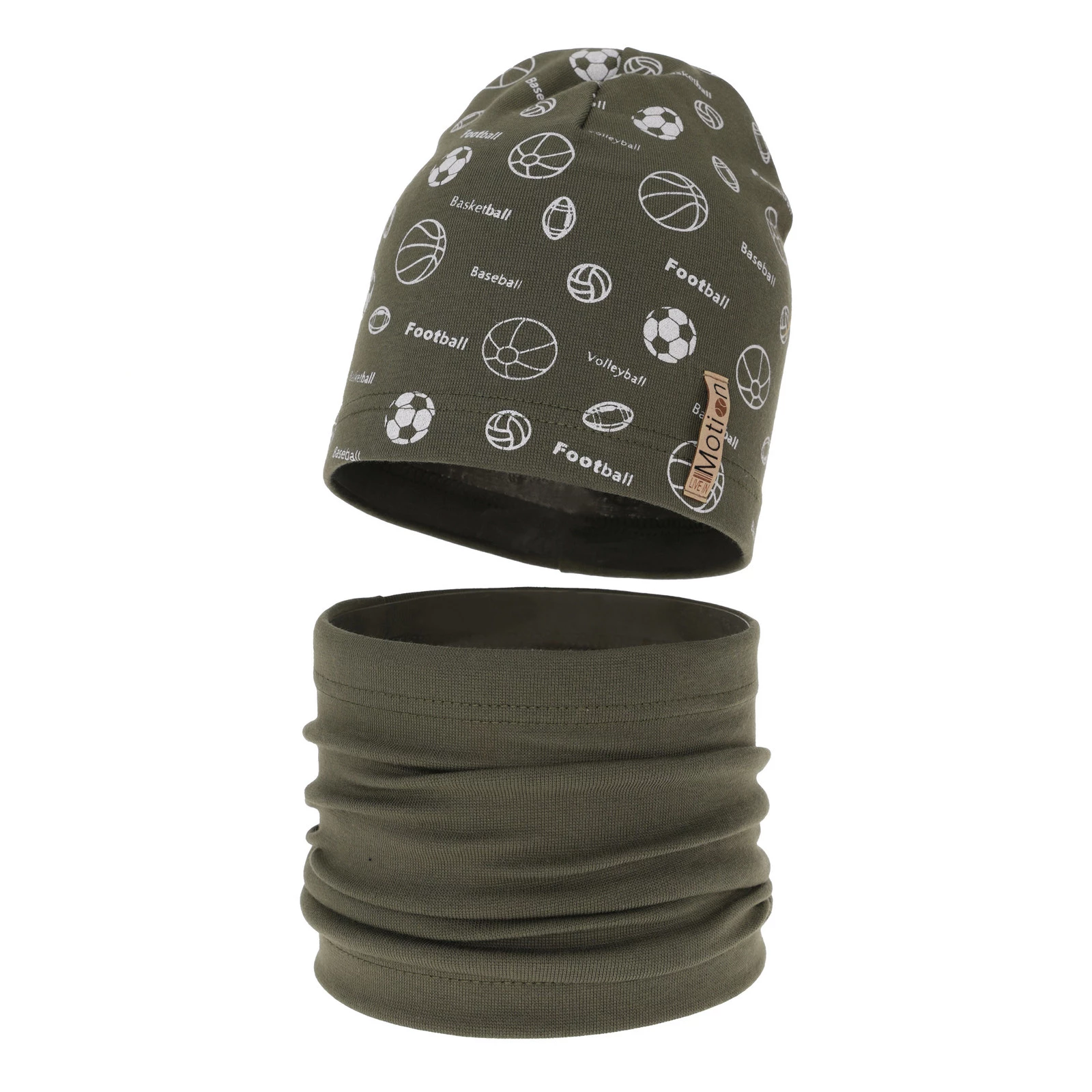 Komplet podzimní/jarní chlapecký: čepice a tunel khaki Paolo