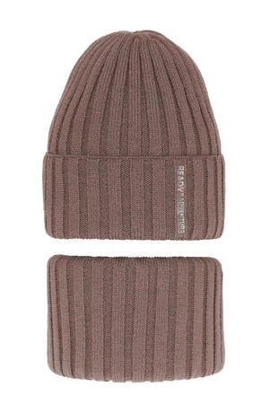 Komplet zimní chlapecký: čepice a tunel hnědý Livido