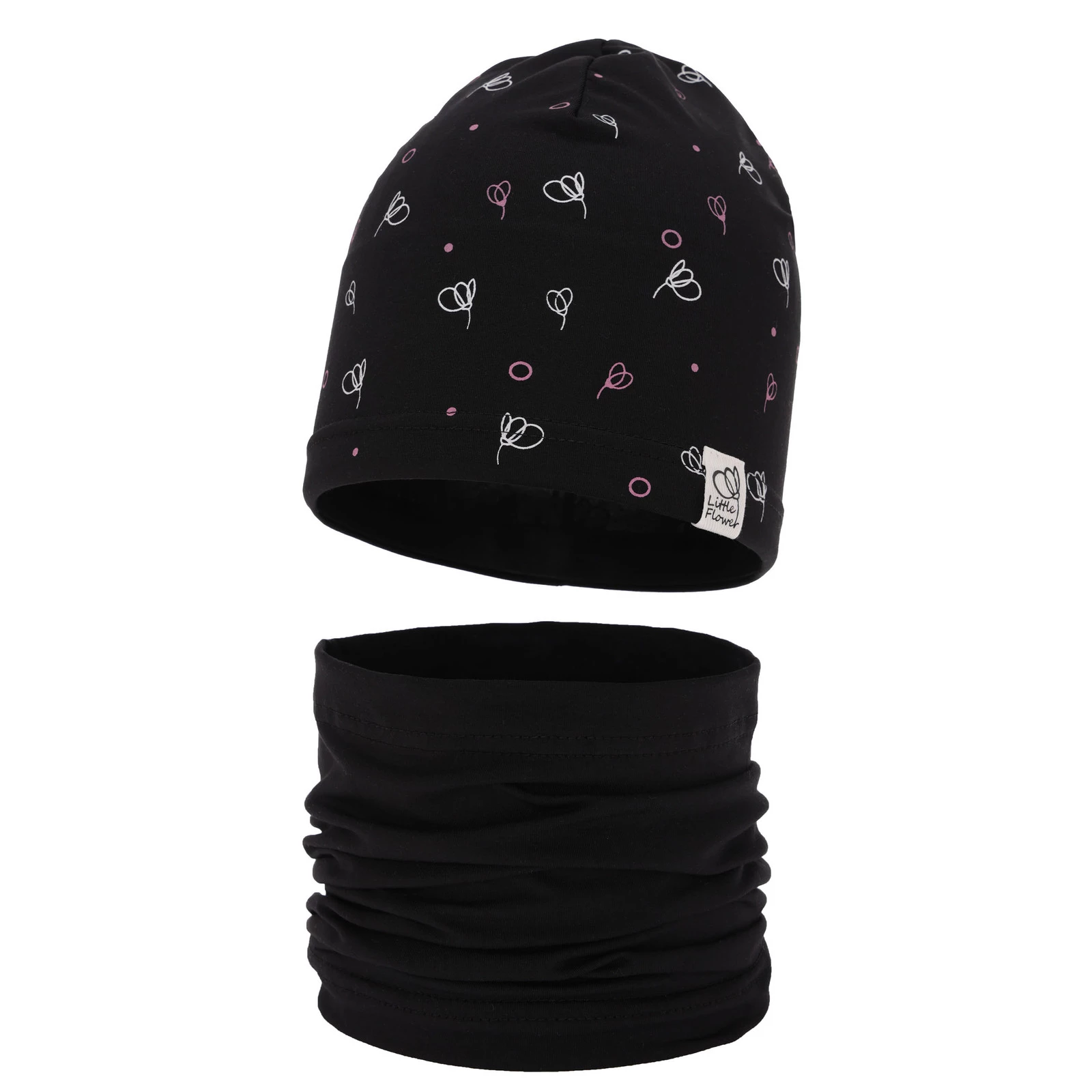 Komplet podzimní/jarní dívčí bavlněná: čepice a tunel černý Fiora