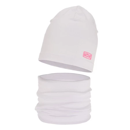 Komplet podzimní/jarní dívčí bavlněná: čepice a tunel bílý Friza