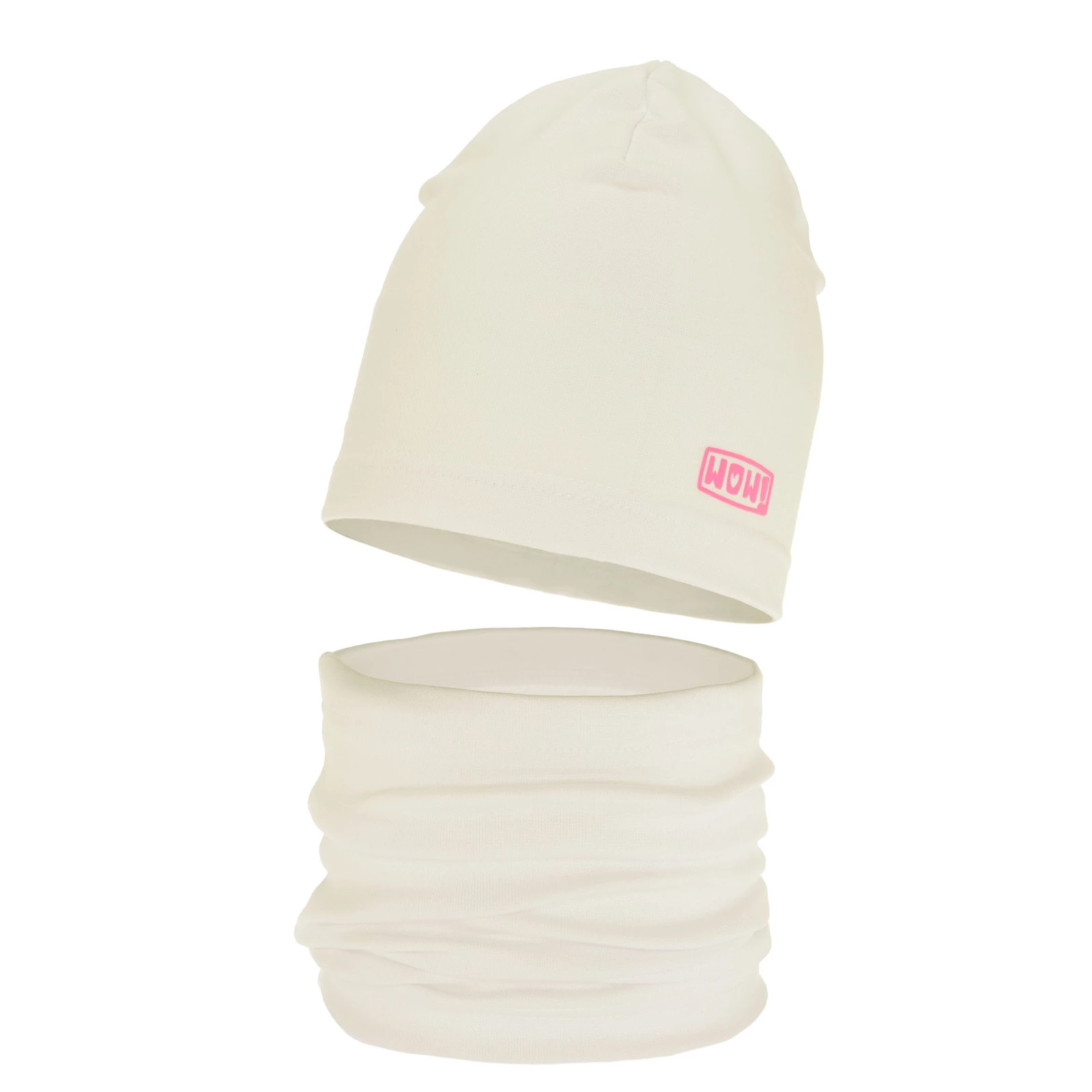 Komplet podzimní/jarní dívčí bavlněná: čepice a tunel krémový Friza