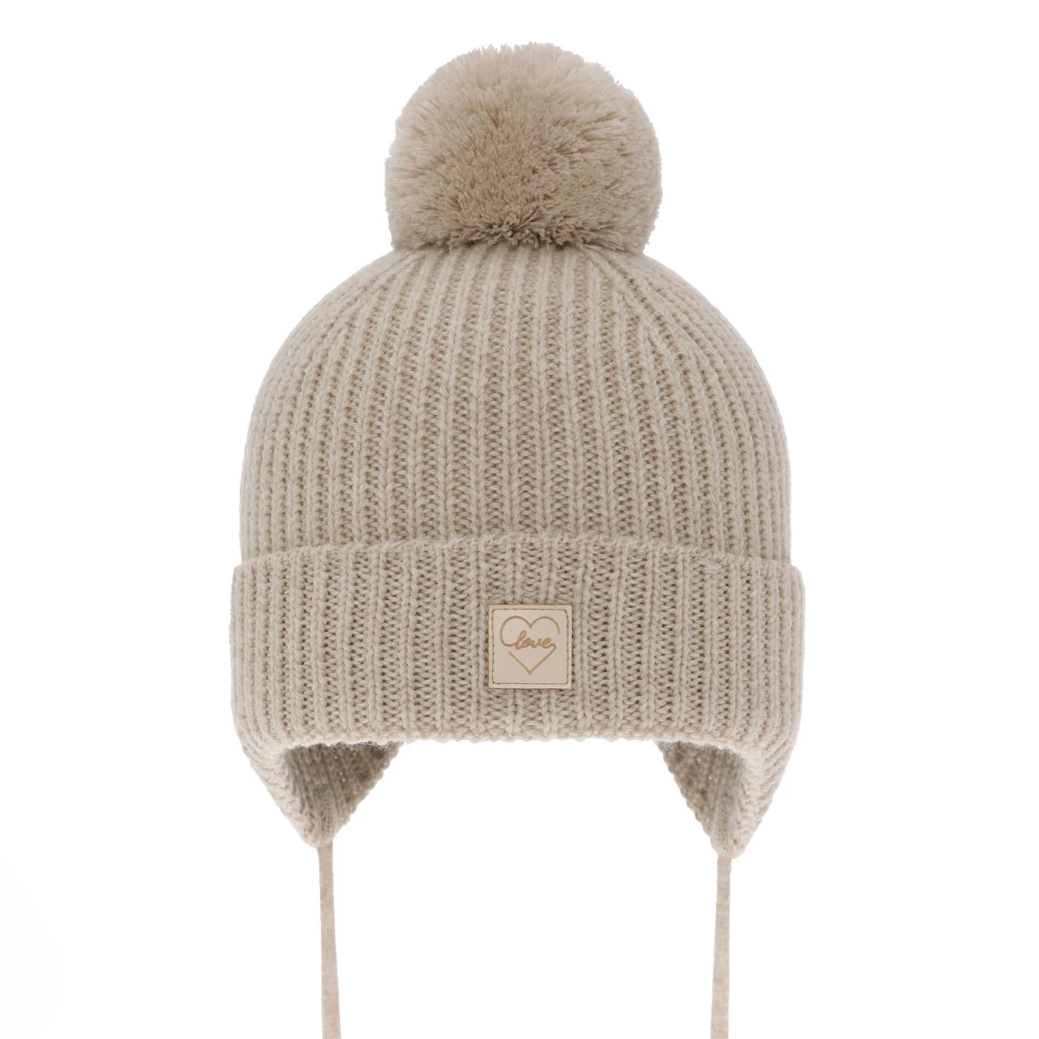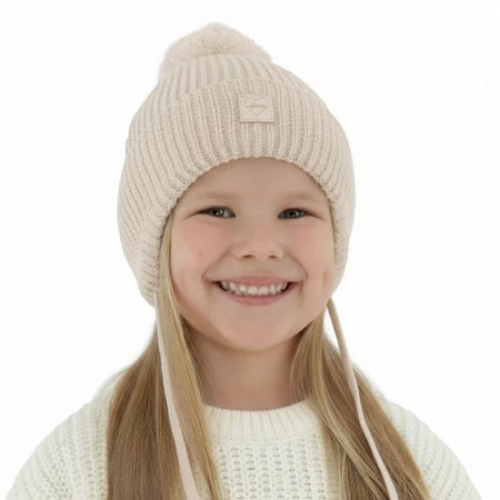 Dievčenská zimná čiapka béžová 100% extra jemná merino vlnená s podšívkou z vlnené Hakkari